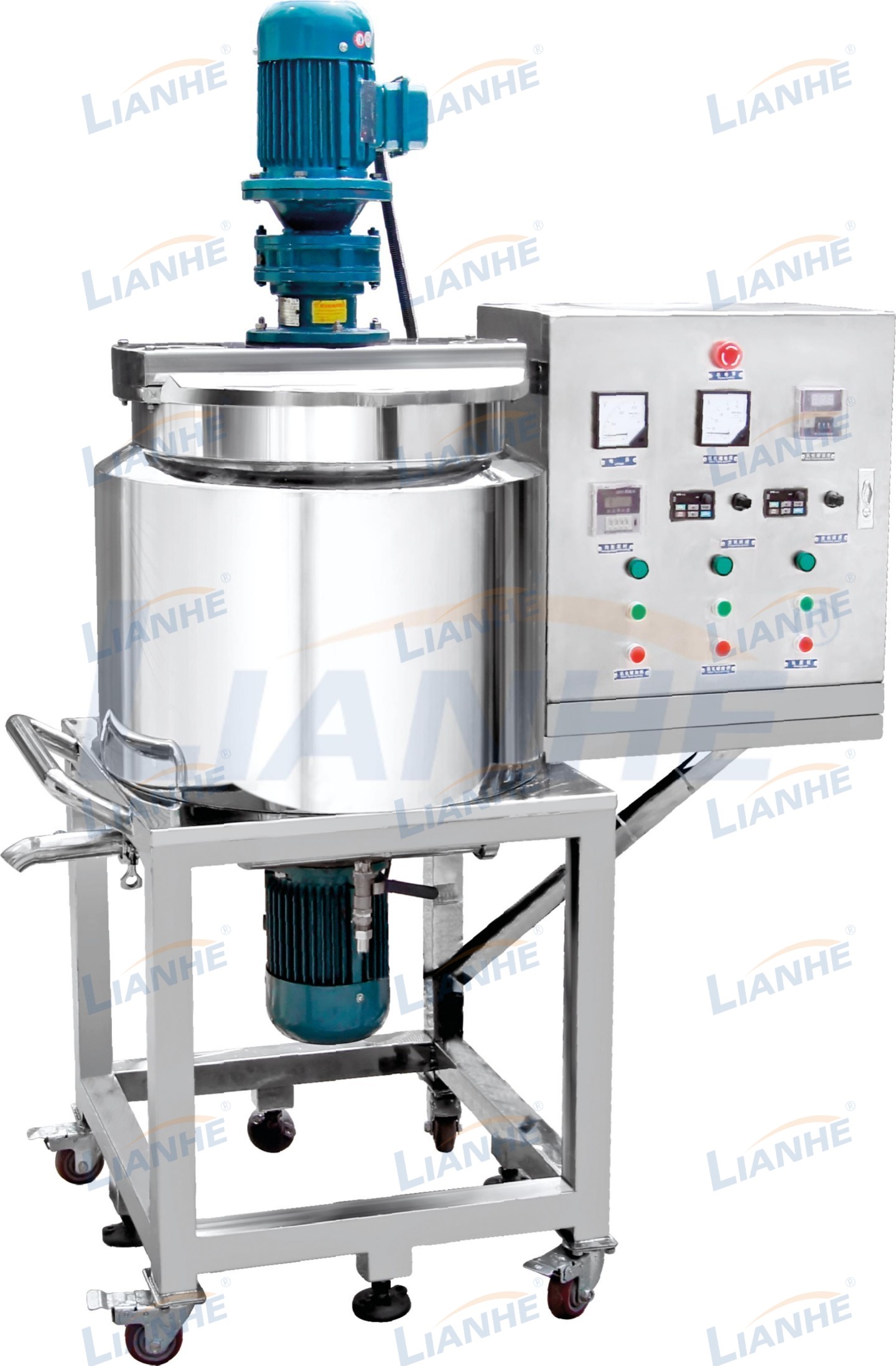 該機(jī)組適用于生產(chǎn)液體產(chǎn)品(如洗滌劑、洗發(fā)水、沐浴露等),集混合、均質(zhì)、加熱、冷卻、泵出成品、消泡(選配)等功能于一體,是國(guó)內(nèi)外工廠生產(chǎn)液體產(chǎn)品的理想設(shè)備。