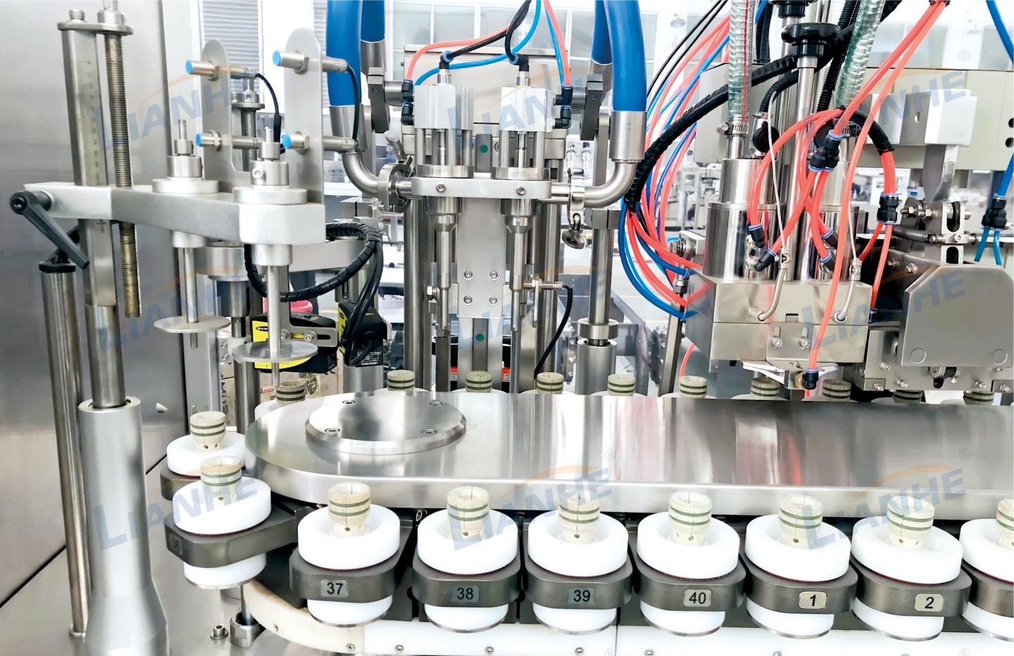 這款先進(jìn)的灌裝機(jī)配備用戶(hù)友好的觸摸屏界面,操作直觀。它通過(guò)氣動(dòng)控制確保精準(zhǔn)灌裝,并配備光電傳感器和氣動(dòng)門(mén)聯(lián)動(dòng)裝置。系統(tǒng)采用氣動(dòng)執(zhí)行器控制閥,提供獨(dú)立可調(diào)且可清潔的流道,確保高效安全。機(jī)器采用防滴漏和防拉絲噴嘴設(shè)計(jì),由耐用的不銹鋼和陽(yáng)極氧化鋁制成,與物料接觸的部件則特別采用耐腐蝕的SUS316不銹鋼,確保衛(wèi)生耐用。