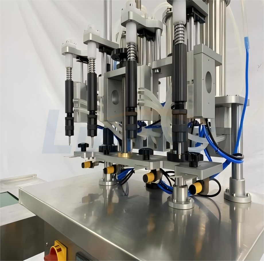 1. 該機(jī)器配備4個(gè)灌裝頭,可滿足各種生產(chǎn)能力。