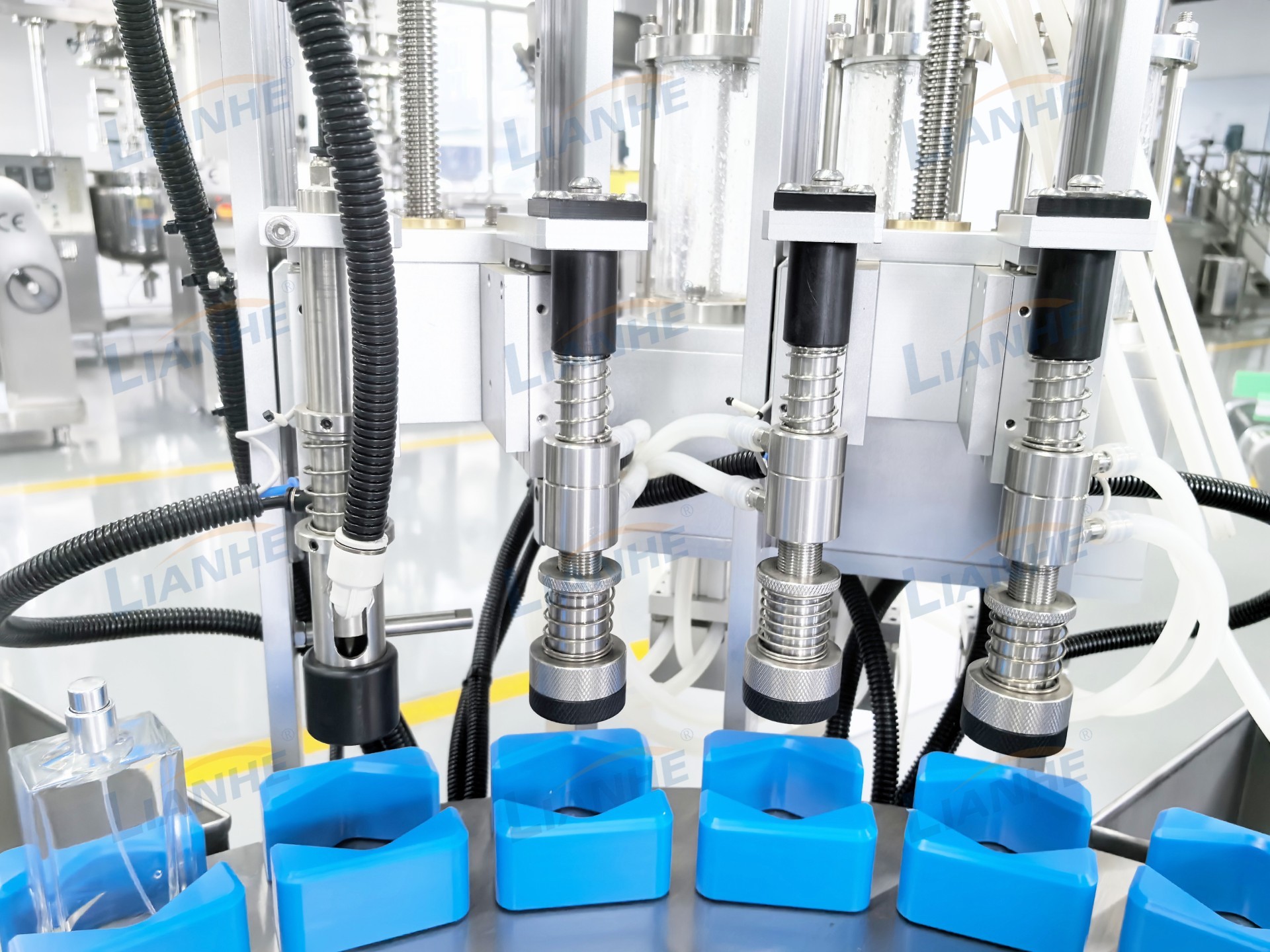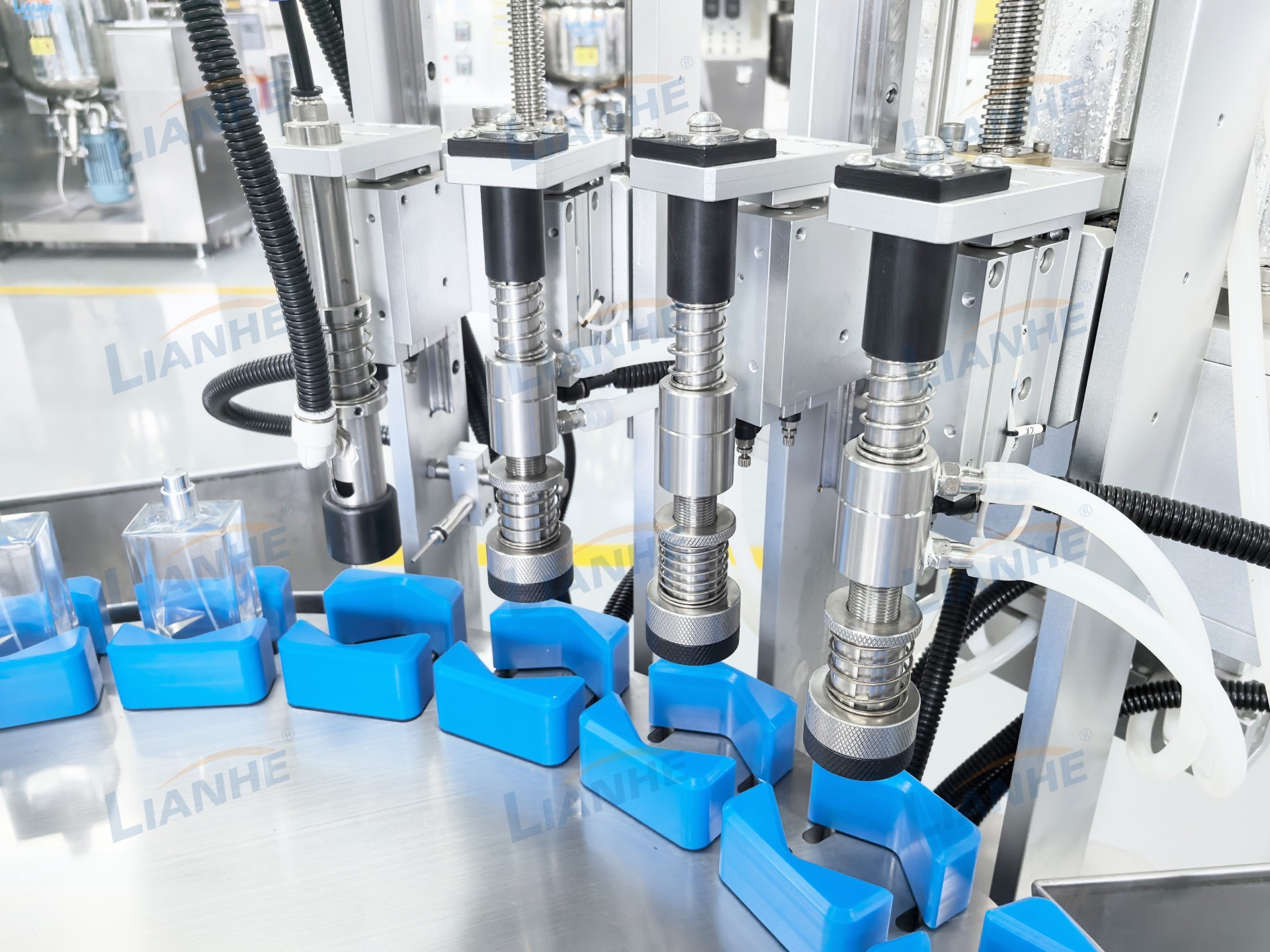 因香水噴頭管普遍都比瓶身長(zhǎng) 通過(guò)預(yù)扎口先導(dǎo)正預(yù)扎